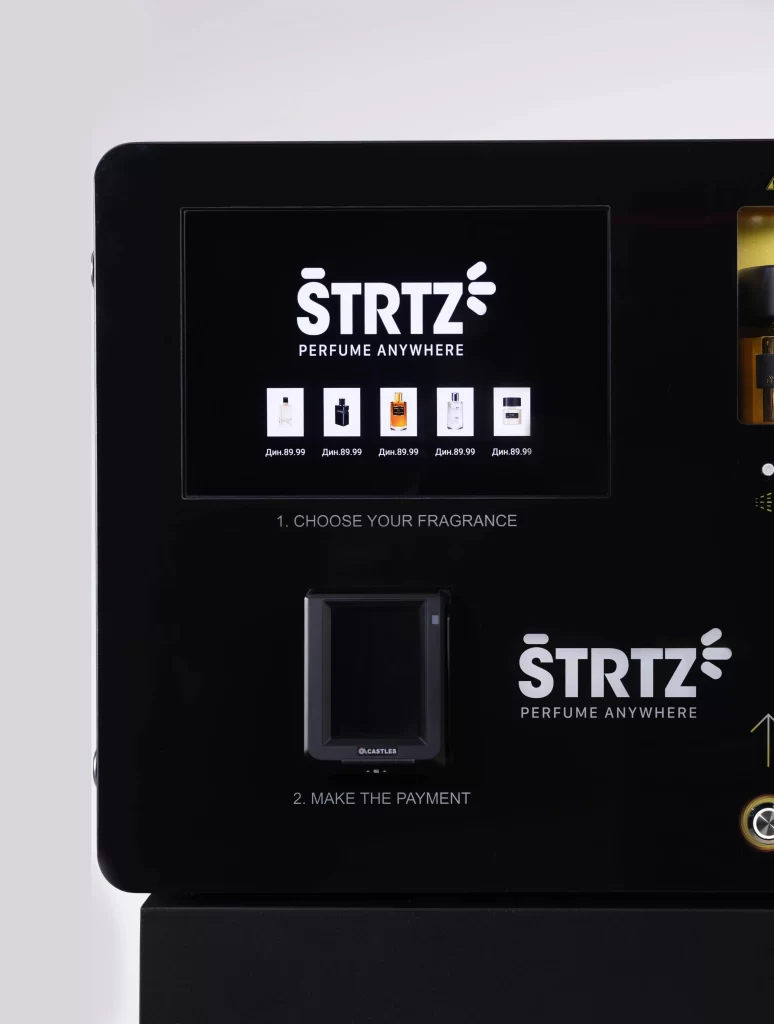 U svakom ŠTRTZ automatu uvek je dostupno pet različitih parfema, a ponuda se redovno ažurira i razlikuje od lokacije do lokacije. Plaćanje je brzo i jednostavno – platnom karticom, po dozi parfema.